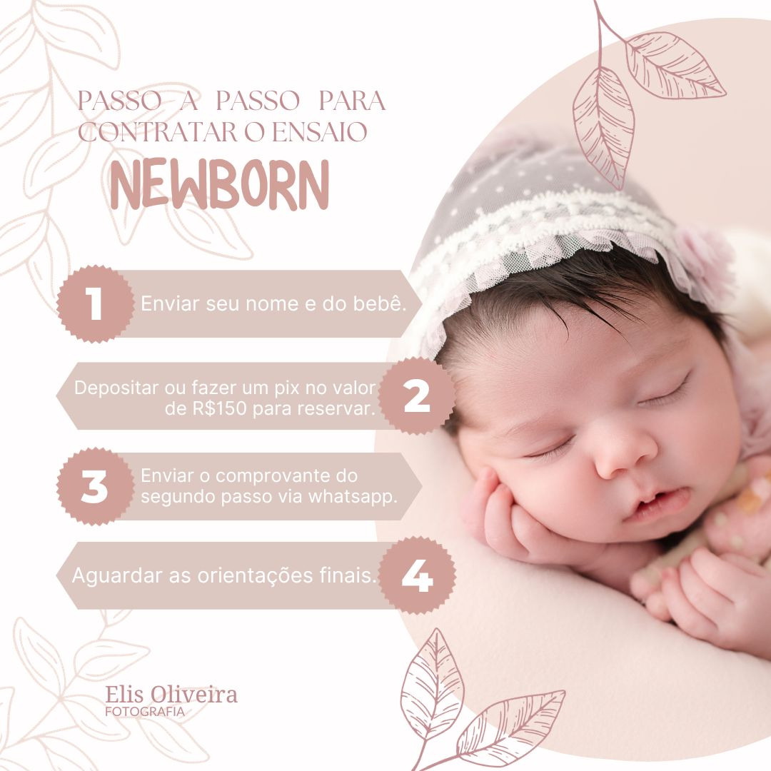 Aqui segue um passo a passo sobre como funciona a reserva de data para o ensaio Newborn.